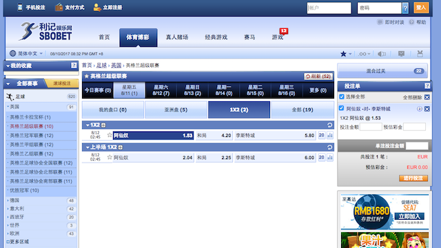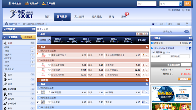 SBO利记的优势绝对是亚洲盘和总入球市场,并且提供的联赛和滚球投注覆盖面广。如果您想投注1×2或者夺冠市场,我们可能会建议您使用别的博彩公司。